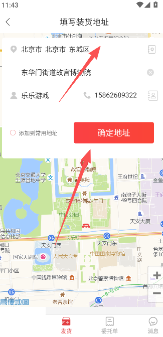 3、在下单页面中,点击输入卸货地址详细介绍部分。