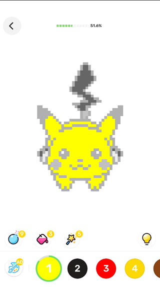 1、进入游戏后在主页就能选择各种卡通图像进行填充颜色,我们选择自己喜欢的图案进行上色,小编这里选择了大家都熟悉的皮卡丘