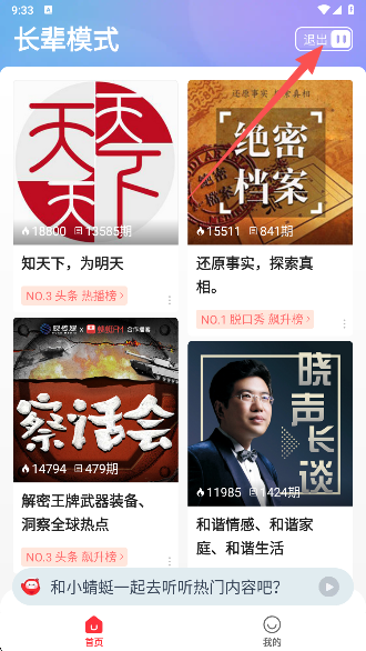 3、然后就会进入长辈模式了,点击右上角可以进行退出