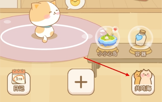 1、大家需要返回到主界面点击“共鸣海”来查看其他用户的心情日记。