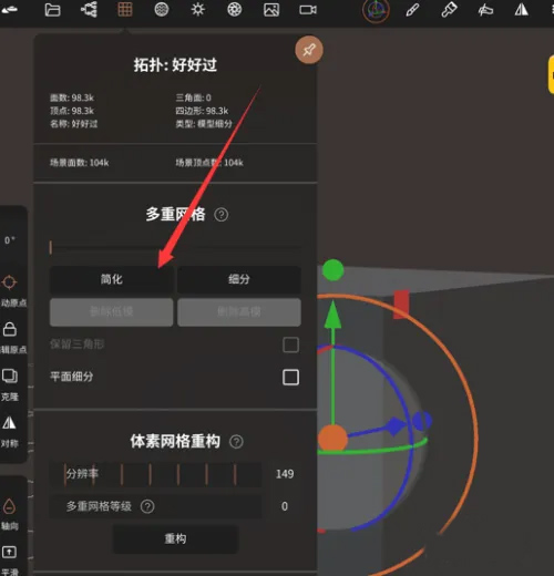 如箭头所示,在“拓扑”下选框里找到“简化”点击。
