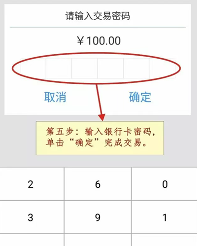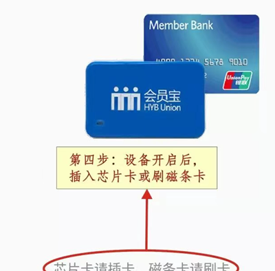 ②.在所连接的pos机上也会显示消费交易金额,待持卡人确认消费金额无误后,从pos右侧插入银行卡(有芯片一侧正面朝里),短暂读卡后,会在pos机屏幕上显示该张银行卡卡号,在pos上点击确认按键,之后需要持卡人输入银行卡支付密码,点击确定,会提示“交易成功”,说明交易完成。