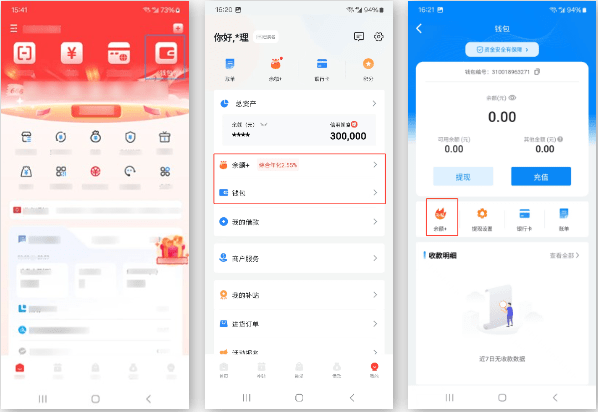 *拉卡拉APP首页或【我的】页面点击【钱包】可使用钱包功能,开通“余额+”可享补贴收益