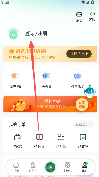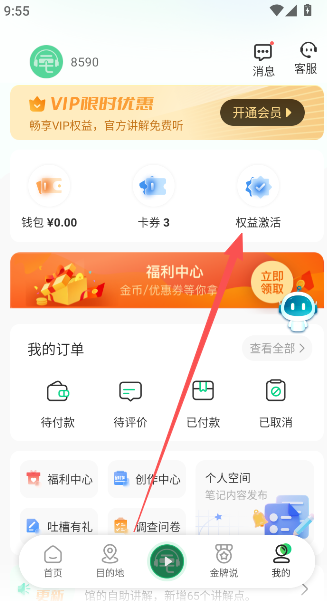 1、点击用户界面,选择权益激活选项。