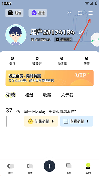 1、打开遥忘App,选择我的模块,点击右上角图标,如图所示