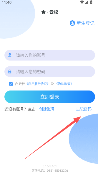 2)、在线注册:在线注册一般为多个家长监管一个孩子时使用。安装家长端完毕后,在手机桌面上会显示“合云校”字样的图标,点击该图标,系统显示登录界面。