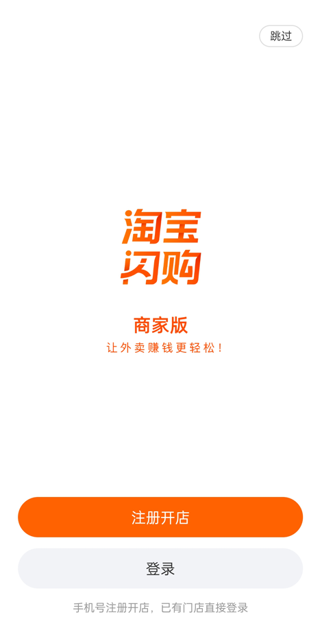 1、打开淘宝闪购商家版App后,首先点击首页的“注册开店”入口