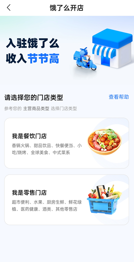 2、随后根据自己的经营类别,选择“餐饮门店”或“零售门店”两种类型之一