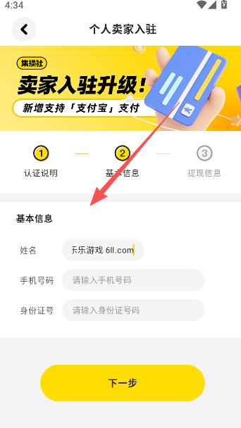 4、输入个人信息以及提现信息部分点击提交,等待平台审核认证通过以后,就成功入驻啦。