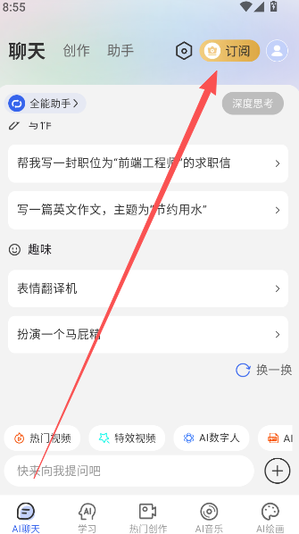 1、全能AI智能助手永久会员,可点击软件右上方订阅选项查看。