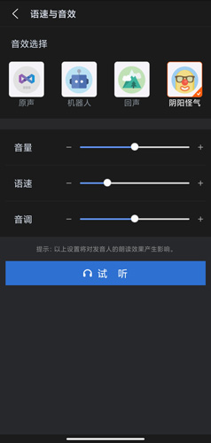 2、进入文本界面后,点击上方的“耳机”图标,就能听小说啦。