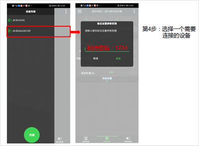 第3步:点击"扫描”搜索设备,如图示输入密码。