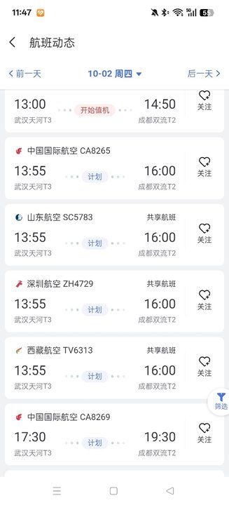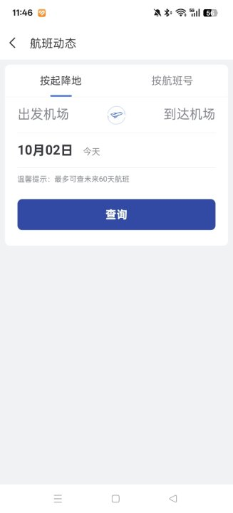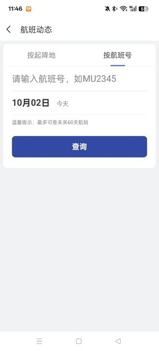 2、按起降地、航班号的方式查询航班飞行的动态详情。