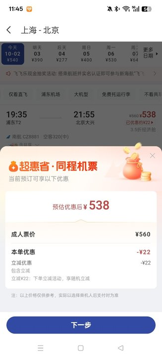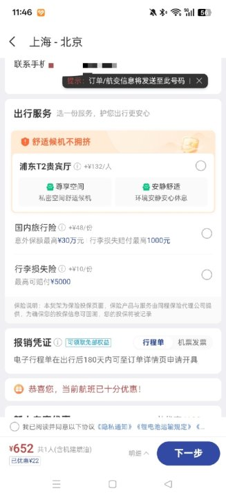 5、国庆中秋双节期间,为了给到更多出行福利,也是给到大家超多订票优惠的,系统内会为你自动匹配该次航班能够用到的,直接支付就行。