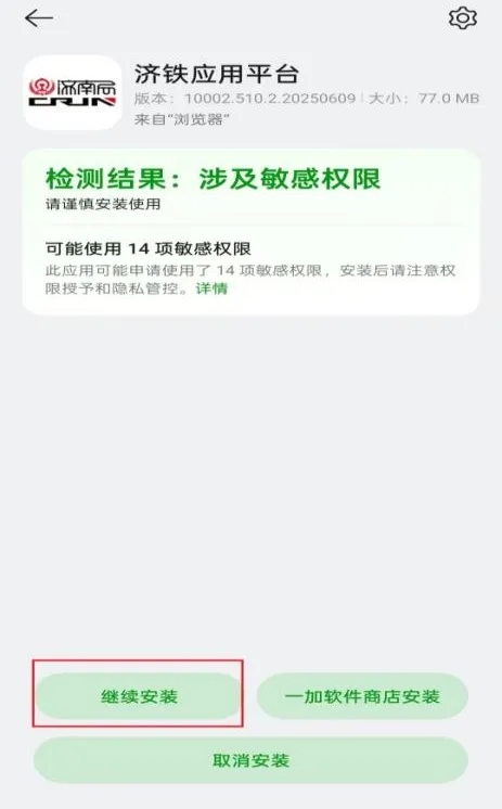 用华为手机自带浏览器中,扫描下方二维码,下载“济铁应用平台”。