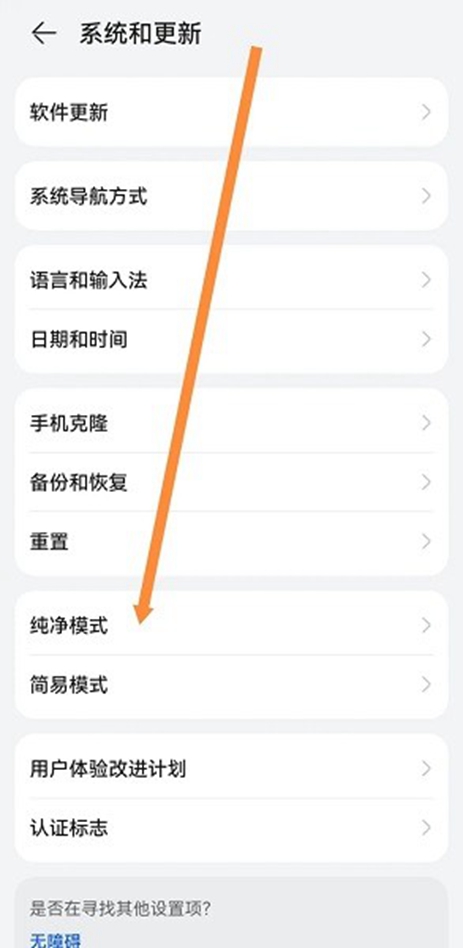 以华为手机的纯净模式为例,具体操作步骤如下:首先点开手机“设置”,找到“系统和更新”。
