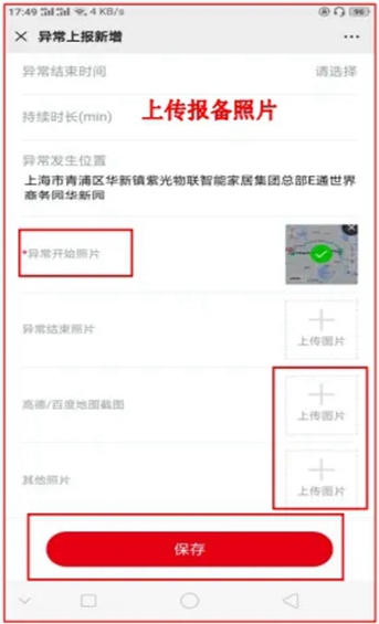 ③照片要求:异常开始、异常结束,两张带任务单的水印照片(正上方看得清前方路况,正下面看得清任务单内容)