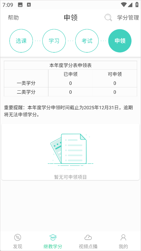 2、软件首页发现功能中,用户可以制学习计划管理学分,观看有观视频教学。
