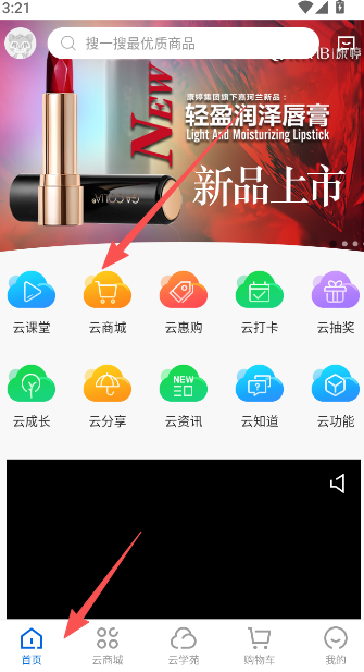 2、点击首页上方功能区云商城,或是直接在下方栏目云商城中选择购物下单。