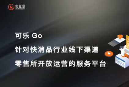 友生意旗下产品“可乐Go“是针对快消品行业线下渠道零售所开放运营的服务平台, 旨在助力品牌厂商构建直达目标零售终端(直销)的营销体系,规范渠道管理,提升品牌厂家渠道分销效率及营销投入效果,实现渠道模式的转型升级,从而获得零售终端的持续经营能力。可乐Go系统分为客户端、业代端(友润通、友润达)和老板端3个模块。