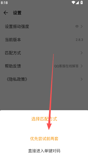 2、在设置栏目中选择匹配方式。
