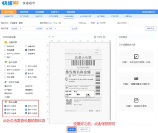 (3)如果出现网点面单模板无隐私设置选项,可联系快递100客服或技术协助。