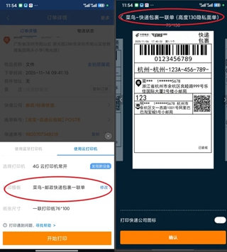6、选择相关手持打印机的品牌和型号。然后点击确认打印操作,等待电子打印单生成。