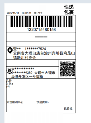 通过以上隐私设置后,面单上的寄件人/收件人的姓名将会只展示第1个字,电话号码将只展示"前一后四”(即第1个号码和末尾4个号码)。