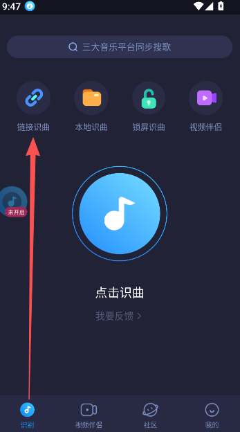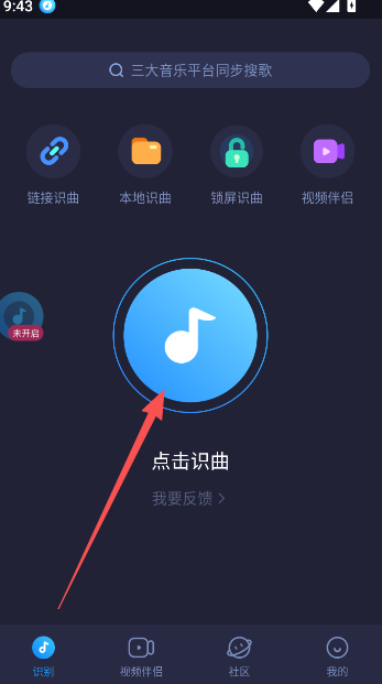 1、浮浮雷达听歌识曲功能无需额外设置,点击打开软件以后,点击首页听歌识曲功能。