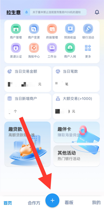 2、用注册手机号登陆后,点击首页-商户入网或者下方加号。