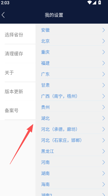 1、打开所下载的软件以后进入,点击选择所在省份开始学习。