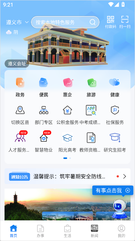 i遵义app是一款专门为遵义本地打造的生活数字服务平台,在这个平台也是为大家带来了全面的生活服务内容,您还可以关注到本地资讯动态等等,都是能够极大的满足大家的生活需求的,想要了解更多的朋友现在就来下载使用吧!