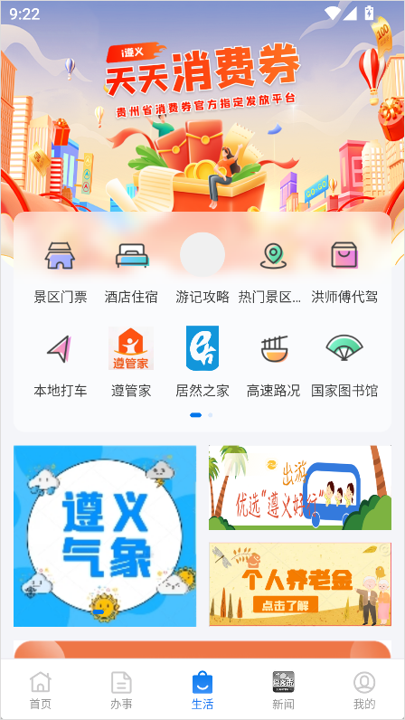 打开i遵义首页,可以看到页面集成了区县部门专区、人才服务、社保相关等常用功能入口。