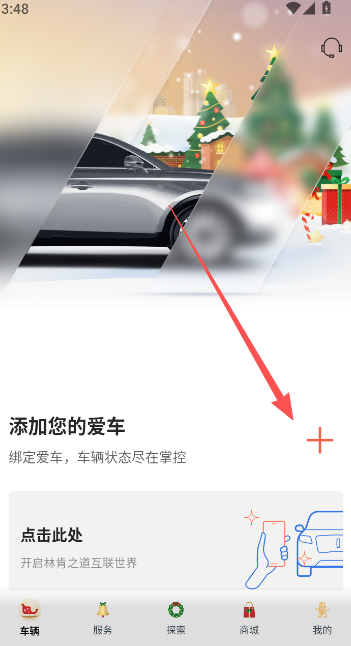 3、来到软件首页,点击车辆页面添加爱车。