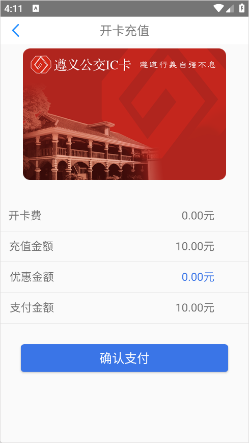 4、确认信息无误后完成支付,即可成功开通公交云卡功能。