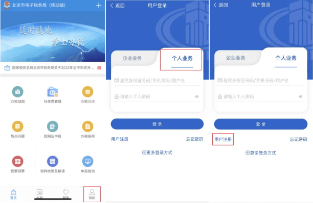 注意:若首次登录电子税务局,需先下载“北京税务APP”进行注册,注册完成后即可通过“北京税务APP”或“北京税务服务号”微信公众号登录进入办理业务。