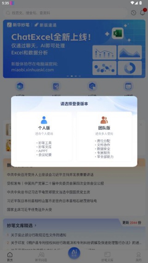 专业权威数据库:涵盖政策学习文件、范文材料、写作素材库等五大专业数据库,确保内容权威合规