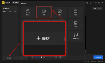 点击【+素材】下方的【视频】,在电脑上找到用于录播的视频,点击【打开】即可导入;