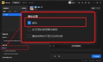 导入视频后,会有设置弹窗,【视频设置】-【播放设置】勾选【循环】