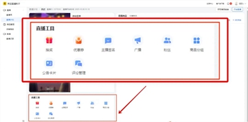 依旧是美团直播助手的网页端,进入直播间后,鼠标下滑,即可看到直播工具面板,可发起抽奖、发优惠券、广播、公告卡片,进行评论管理等。