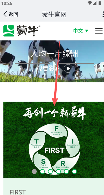 4、登录完成以后,就会跳转至蒙牛官网,接着就可以按照门店管理端的操作步骤来正常拜访门店啦。