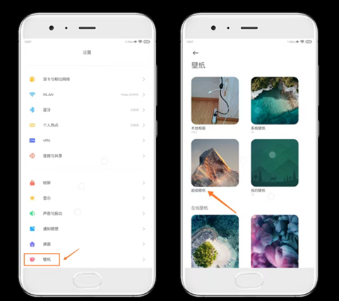 1、MIUI稳定版机型或者MIUI开发版机型,如果能在【设置】显示【壁纸】能查看【超级壁纸】选项,则可以支持安装“24时雪山超级壁纸”安装包,直接使用即可。