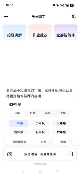 千问智学是阿里旗下全新推出的AI教育应用,专为从小学到研究生全学段用户打造的智能学习助手。通过内置的"小千老师"智能体,提供一对一免费学习辅导,让每个学生都能拥有专属的AI家教,真正实现"学习问题随时问,解题思路随时懂"的智能学习体验。