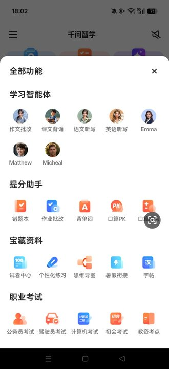 个性化学习支持:支持作文批改、试卷查找、听写陪练、课文背诵等多种学习场景