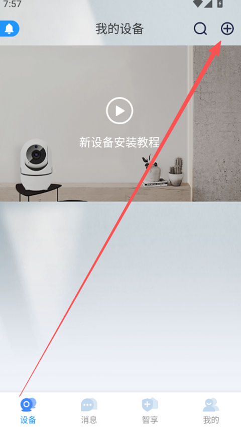 1、注册登录进入首页,点击右上角图标添加设备。
