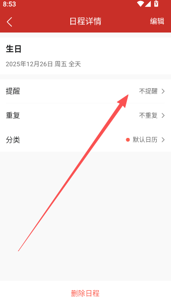 3、在此进行日常详情的设置,选择提醒的次数和分类,完成后编辑保存,返回首页即可。