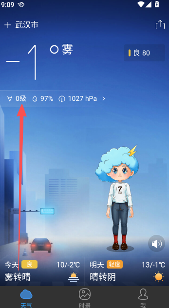 2、定位权限获取以后,就会自动切换当天的最新天气情况显示部分,很直观的数据显示方式,并没有其他花里胡哨的界面弹窗。