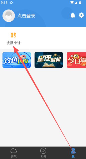 1、在我的页面点击皮肤小铺功能选项进入。
