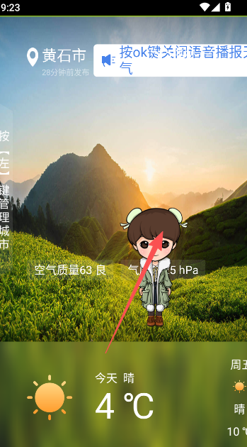 1、墨迹天气tv适配电视遥控的操作方式,遥控上下左右分别为滑动查看天气情况和城市管理。