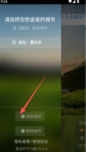 2、想要查看当前所在城市之外,可滑动左侧列表进入开始添加。